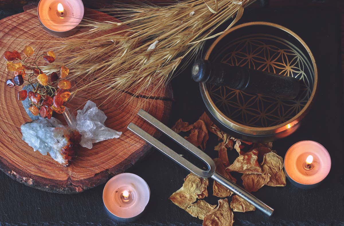 Une collection de diapasons utilisés en sonothérapie.